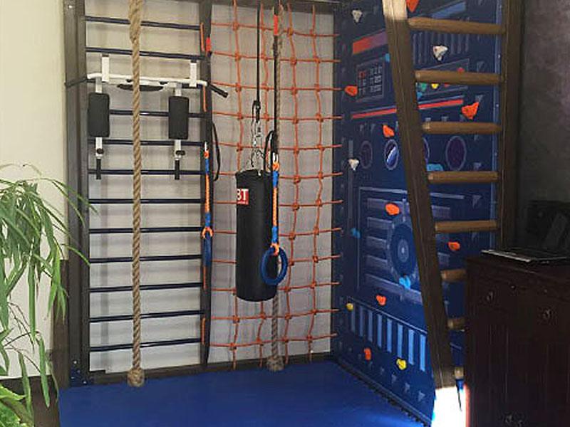 Встраиваемой бывает не только кухонная техника или шкаф в прихожей. Мы встраиваем полноценные деревянные домашние спортивные комплексы в целые комнаты загородных домов и квартир. Вписываем в пространство не только каркас и оборудование, но наполняем помещение духом игры и спорта.