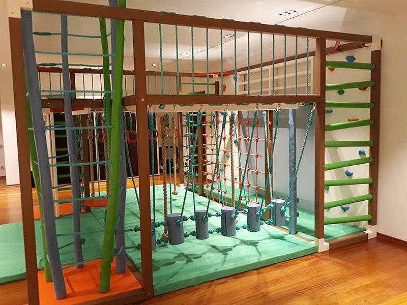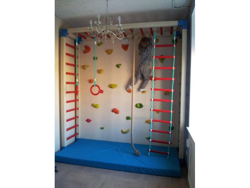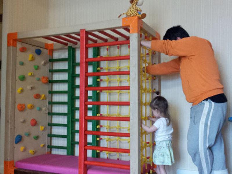 Детские площадки для квартиры могут быть похожи на лаконичный гимнастический зал или вольер для мартышек… Если надо, то потолок будет небом, а паркет газоном. Воображайте дорогие взрослые, оглядывая пока еще пустую комнату, предназначенную для детской. Полистайте журналы, загляните в интернет, посетите зоопарк… Потом звоните нам. Уж мы то развернемся на славу.