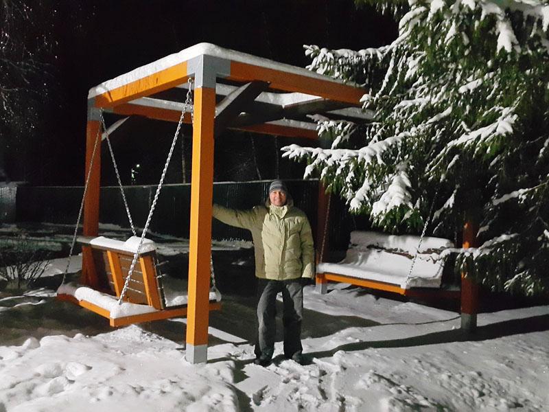 Наши уличные качели изготовлены своими руками, основа — клееный брус и металлические составляющие. Простота исполнения конструкции, ее узлов и соединений обеспечивает высокую надежность и долговечность. В зависимости от того, для каких целей будут использоваться качели, мы предложим навесное оборудование, которое может быть использовано как детьми, так и взрослыми.